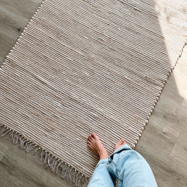 Alfombra de yute y algodon blanco con flecos en las puntas