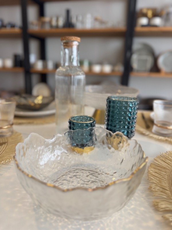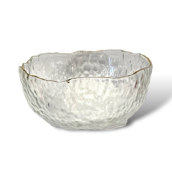 Ensaladera de vidrio labrado con borde dorado