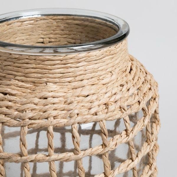 Florero de vidrio y fibra natural