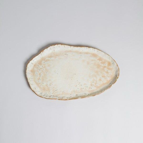 Fuente oval de ceramica borde y terminacion irregular color crema