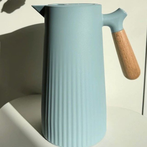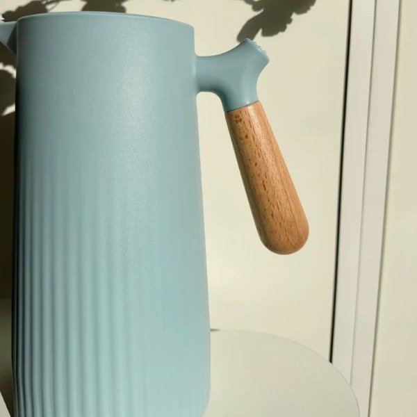 Termo celeste con rayas y asa de bambu